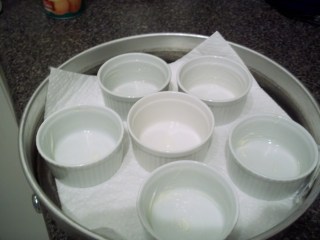 the last step before baking will be to put boiling water in the outer pan about half-way up the sides