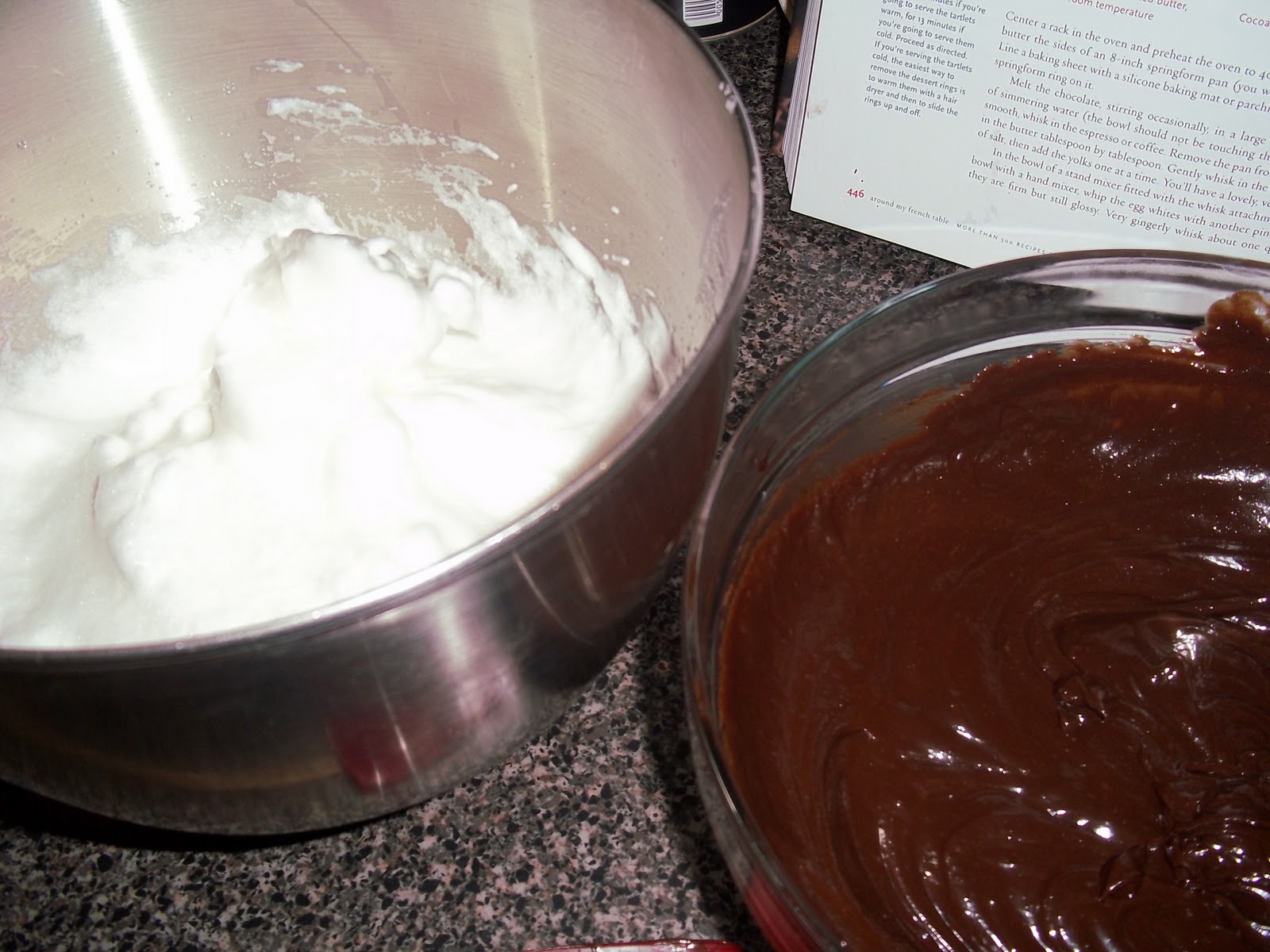 egg whites ready to fold in (I have to admit, I was close to over-doing them, but they worked)