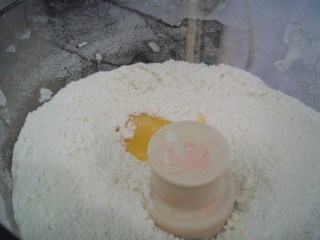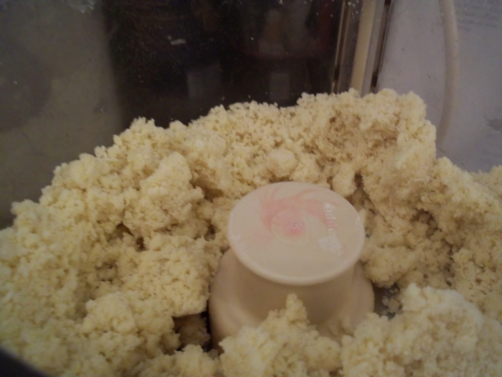 | for the crust, first you blend together the flour, powdered sugar and salt then pulse in the butter next comes the egg to bind it all together, and probably add a little more richness |