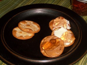 So now, you ask… what do you do with this stuff? Well, the regular jelly is surprisingly good on toast – particularly rye toast. Who knew? That’s one of the great things about sharing, as people tell you how they use things. Toasted bagels, another good choice. I also really like any of these jellies with some cold chicken, or use as a glaze for some grilled salmon… of course, you can also have it as a topping with cream cheese and crackers. But the one thing that I came up with for this particular jelly? Peanut Butter! Yes. Kind of elevates a PB&J!