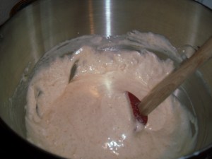 If I had followed the recipe, then I would have prepared my pan ahead. But no, I thought “I’ll just do that while the eggs are mixing – you can’t go wrong with that!” Well, prepping those scallop-shaped molds is trickier than I thought, so it took a little longer. Who knew that whole eggs would whip to such a high volume?