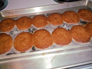 Just out of the oven… you can see, a bit of spill-over, but they look nice and golden!