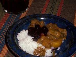 Made this recipe once I found some lamb that wasn’t $12/lb. I like lamb and was looking forward to it. I even like curries that are more Indian-style, though over the past several years, my preferences have leaned to more Thai and southeast Asian flavors. I had just made some amazing cranberry fig chutney from Bobby Flay, so I thought that it would work out well and compliment the dish