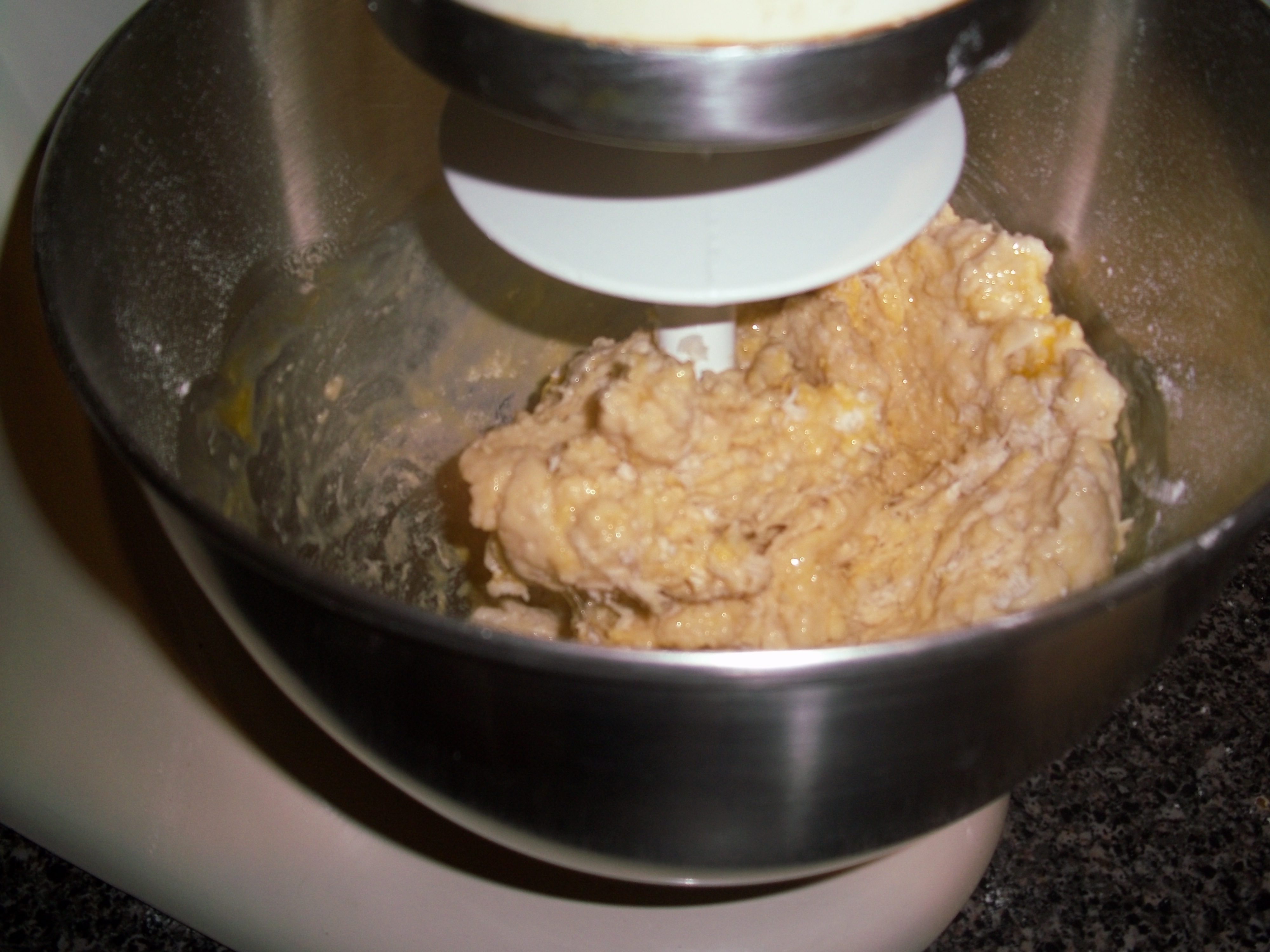 The ingredients are gathered. Then things are mixed together. It starts out as a ragged mess, then gets uglier before things get better! Eventually, it comes together in a golden dough.