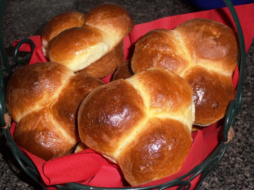 I was happy to find that these were a hit. And they certainly were beautiful! I wish I’d made the loaf too, just because I think it would have been easier to use in other ways. That said, this is not something I’ll make again soon. I actually prefer the rolls we make, and I like the simplicity of the artisan breads too. There are so many other things that I think are more interesting. That said, there were lots of other tempting treats to be created using this dough as a foundation – so… we’ll see.