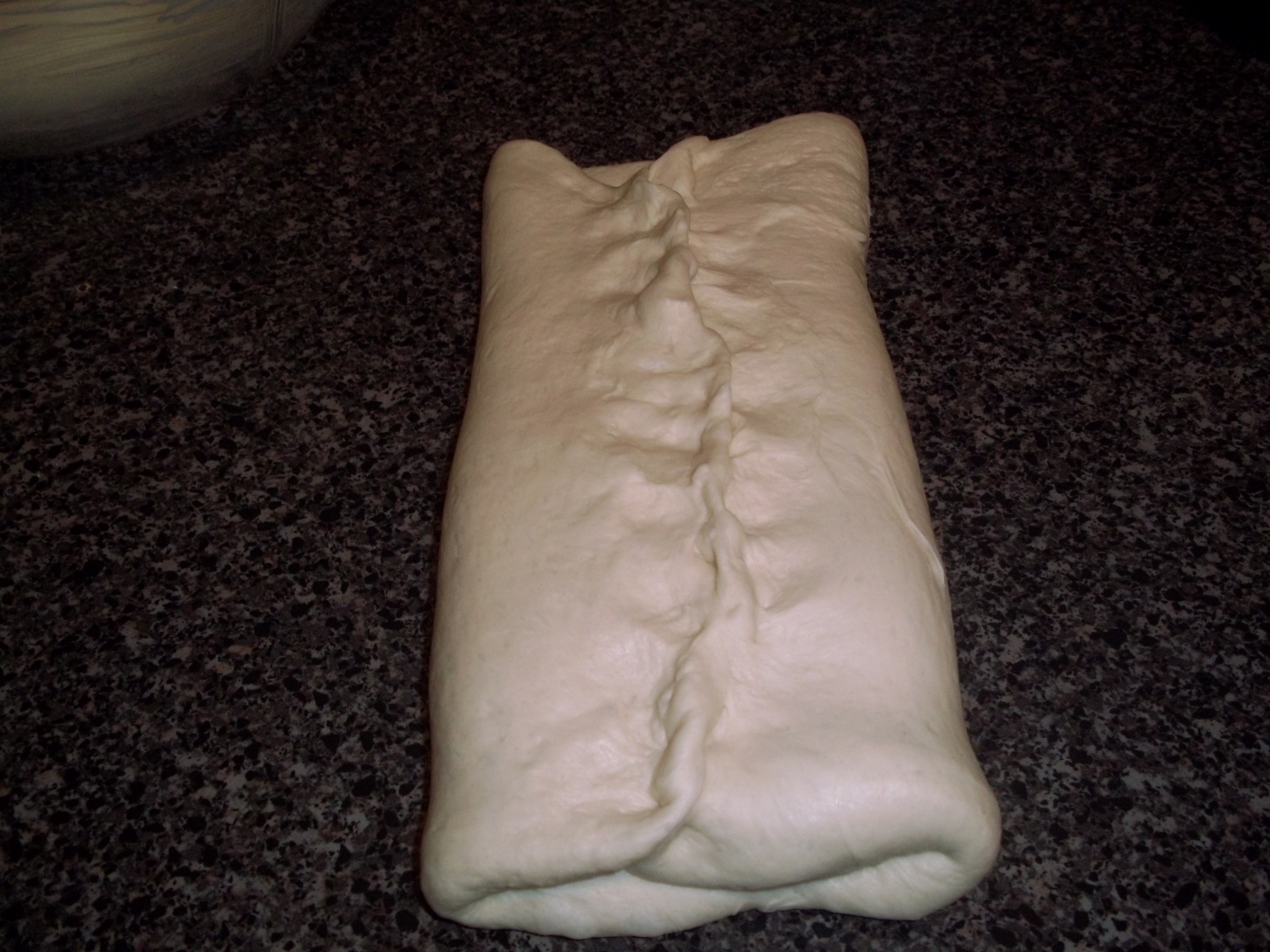 this is where it gets more interesting. I’m more of a “wrap the dough under and turn it into a nice oblong shape for the pan” kind of person when it comes to shaping loaves. Not here though. There’s a specific pattern to follow. I suspect it would make terrific-looking cinnamon swirls, or some such thing. But in the interest of learning, here’s what I did.