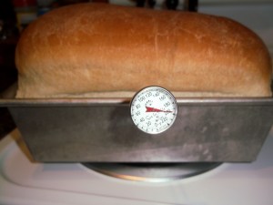 The dough is allowed to rise until nearly double (the rest will happen in the oven). It’s baked for about 35 minutes (for my oven), importantly, until it reaches 200 degrees.