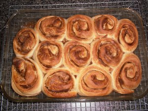 So, what did I do with that other half of the recipe? Well, the other thing my grandmother taught me to make was cinnamon rolls. I was going to Tucson to visit two of my nieces who go to UofA on Saturday, and thought it would be nice to make a treat. And what is the only thing better than a loaf of homemade bread? You guessed it – homemade cinnamon rolls!