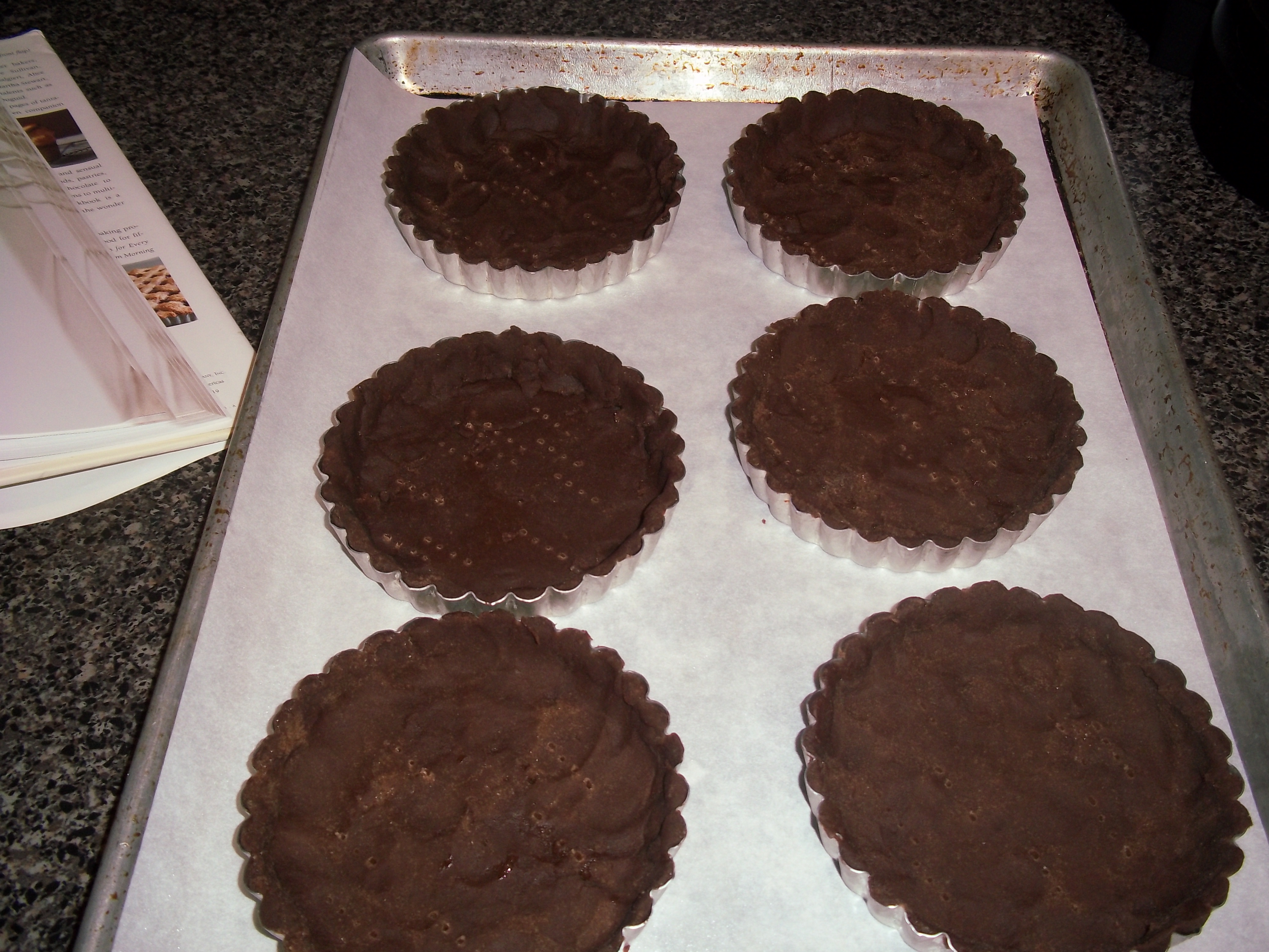 This recipe is a bit different – and more complicated. Similar crust, but the filling has egg yolks and is baked rather than just chocolate and a bit of cream. Also, the suggestion is to have crushed biscotti and white (and milk) chocolate incorporated into the filling, prior to a quick bake. I might have not been as interested before, but I had an amazing ‘chocolate creme brulee” with some goat cheese sorbet in San Jose – I kind of hoped that the filling would have a similar texture…