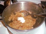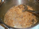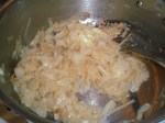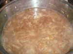 Now comes the long “I must have patience” part. The onions are cooked very slowly in a bit of oil and butter. Good thing that I was busy in the kitchen and realized that my “low” wasn’t exactly Dorie’s. I had to use the 6 mark on my stove, and it still took over an hour to brown my onions. In fact, they could have been browner, but…