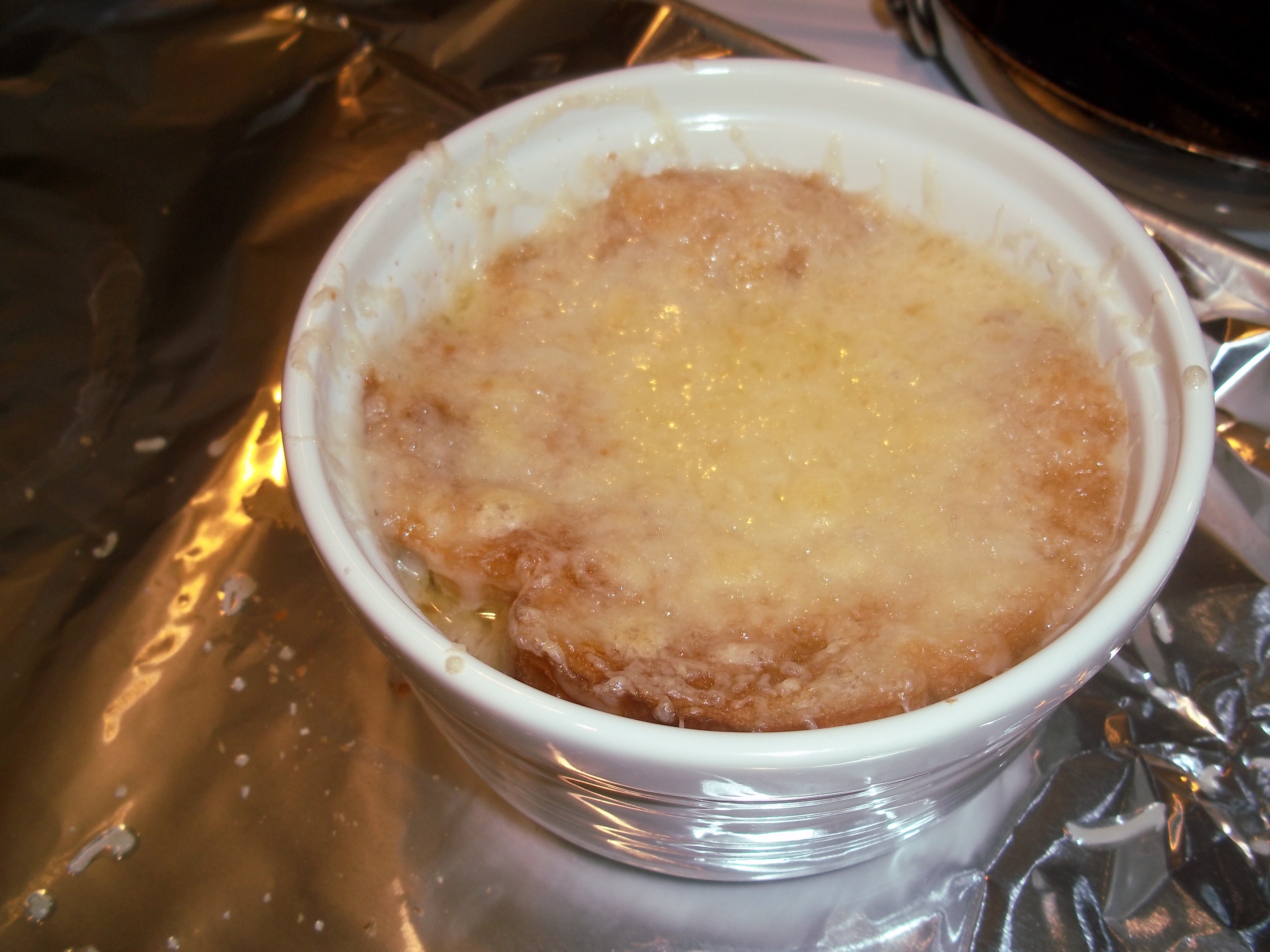 8. Wow, I can’t believe how long the onions took everyone. I was contemplating making this tonight since our temps finally dropped down to the 70’s – just not sure I have enough time to make it since it seems like quite an ordeal. Looks terrific though – cheese, bread and broth, mmmmm.