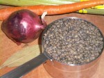 I’ve not cooked with lentils much. I’m not really a huge fan of the texture, but I was looking forward to trying the French du Puy lentils. They were a bit difficult to find, and a bit of a surprise because they’re described as green. Well, ok, a deep forest green – at least before they are cooked.