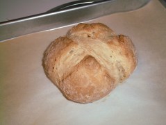 There’s really nothing to this recipe. You just stir together the dry ingredients, add the buttermilk, mix it together, give it a quick knead, and then form it, cut a cross into the top and bake!
