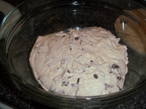 The whole mixture is then placed in an oiled bowl and allowed to rise for an hour or tow, then it’s mixed down and refrigerated 6 hours, and up to 3 days – though Dorie suggests overnight.