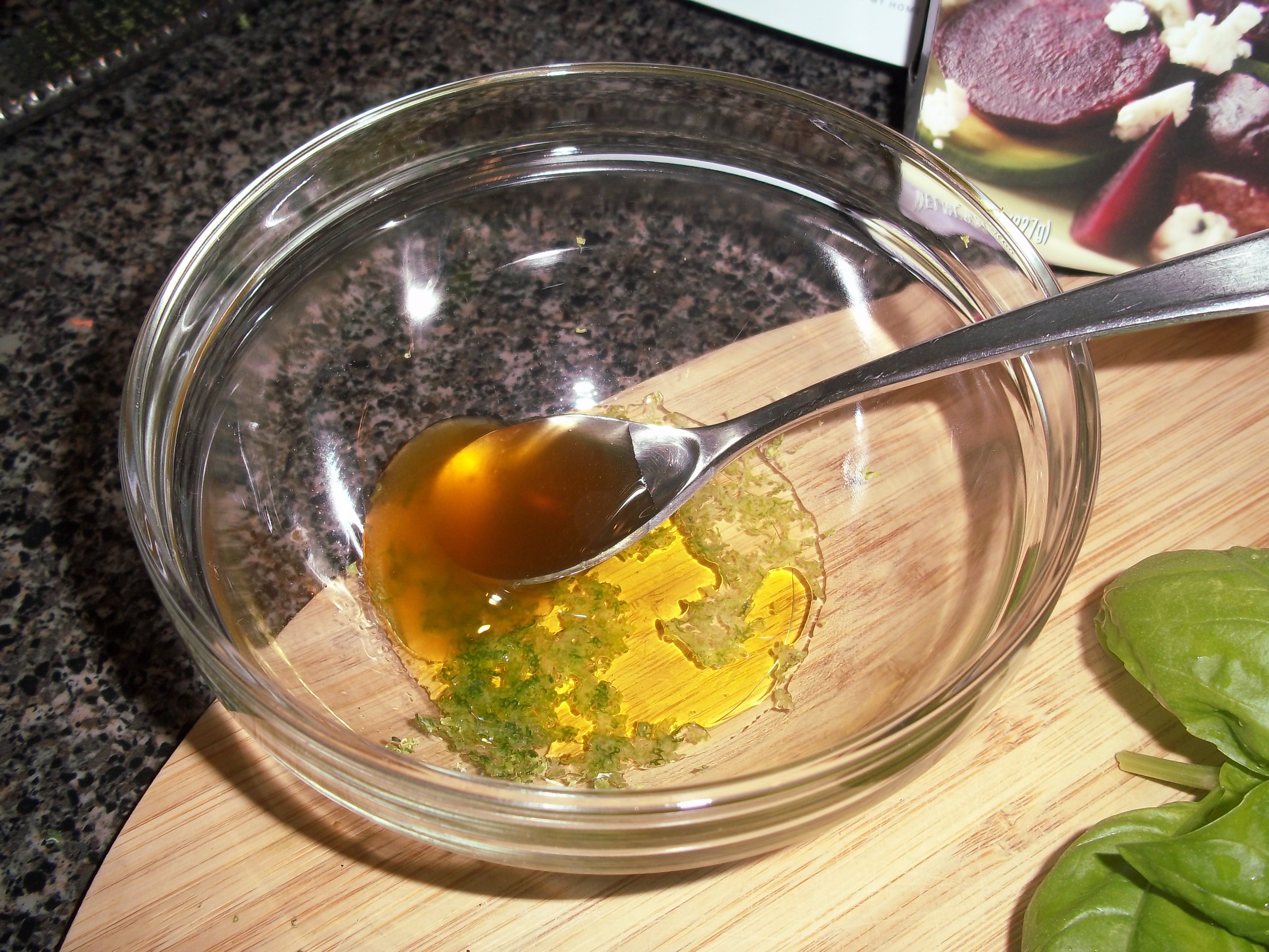 This is a nice salad. I suspect there will be some weighing in on this as a “recipe”. I happen to like beets a lot, and have made this in the past. It’s the kind of thing that is a nice side to go with other things, or, to be honest, really good with the arugula and goat cheese (I’d add some toasted walnuts too). This time it was a quick side-dish, using some fresh basil and mint that I had growing outside.