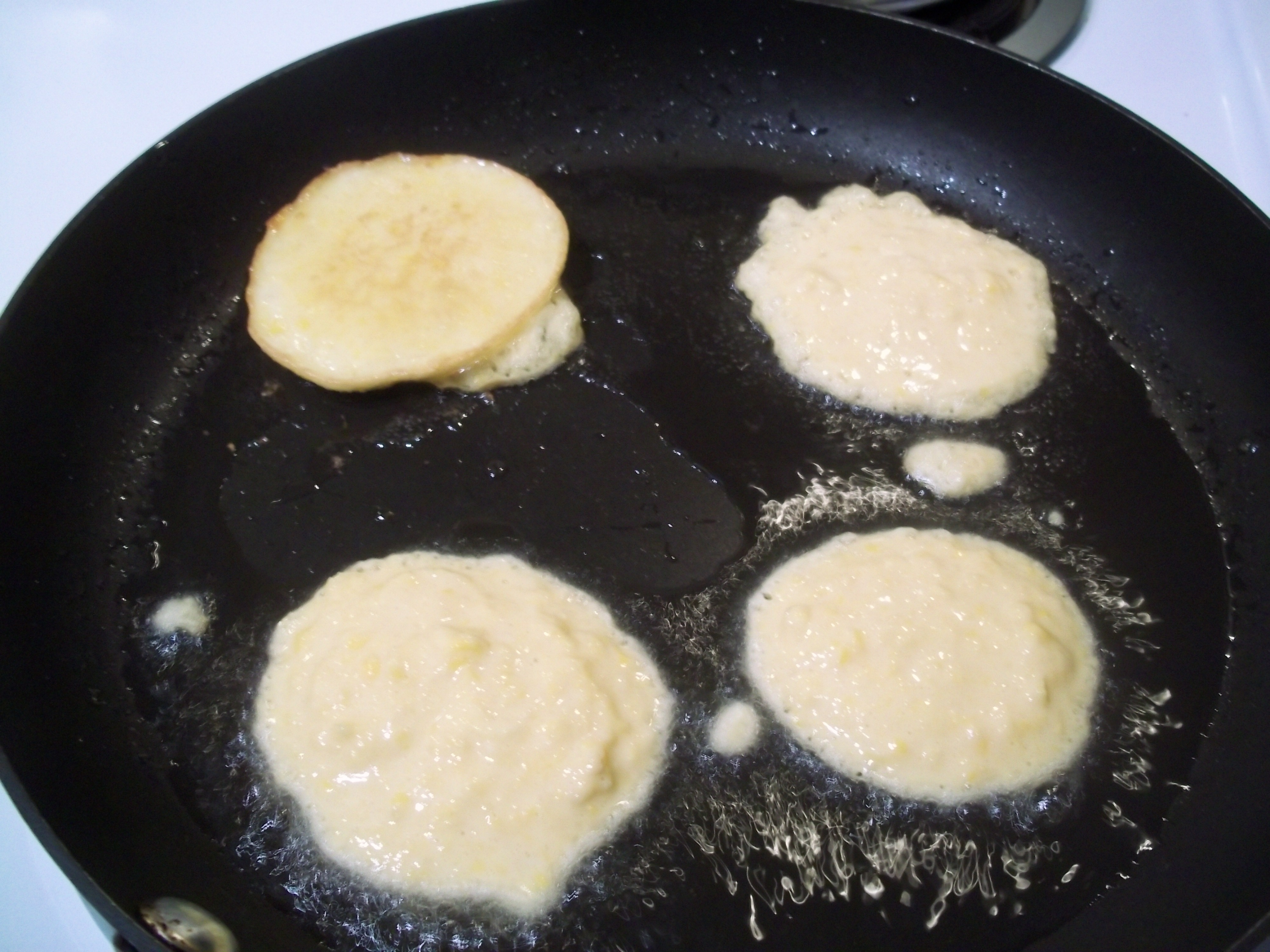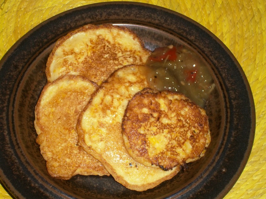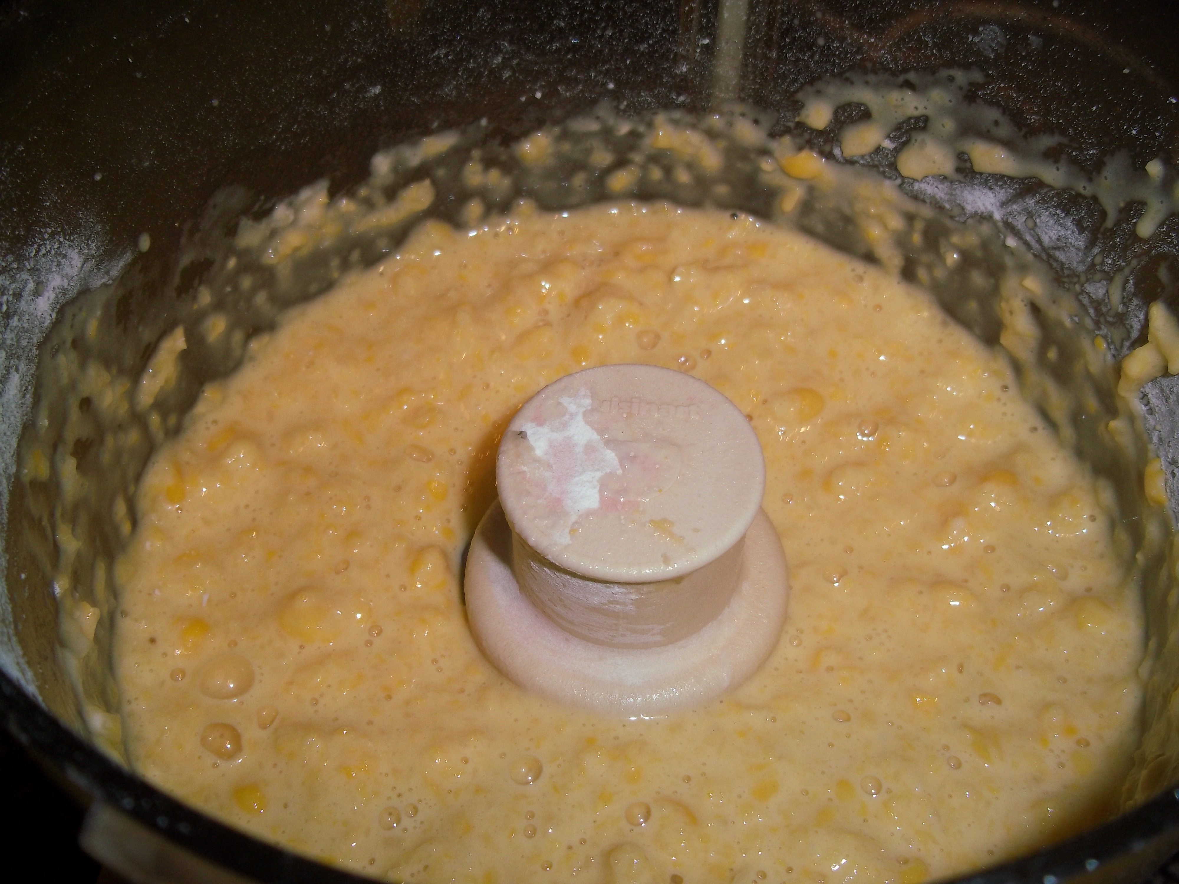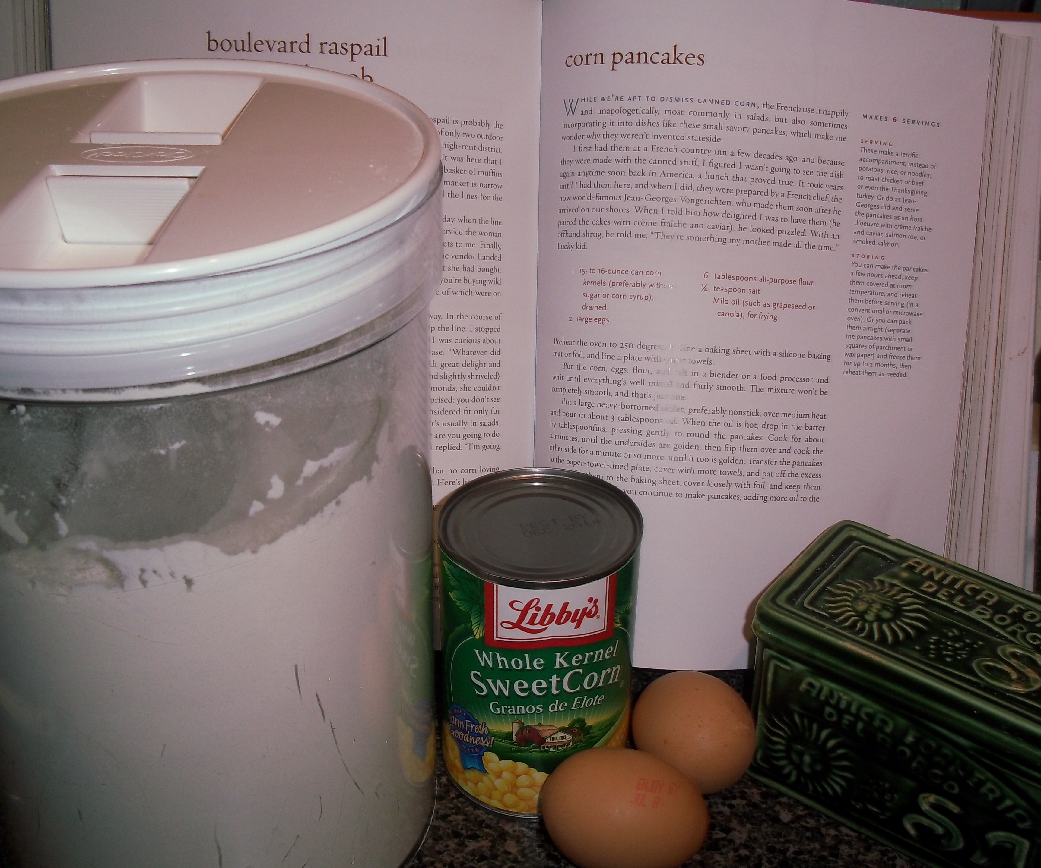 That said, this is a simple dish. Canned corn, flour, eggs, salt.Whirl it all in a food processor, cook the pancakes in a frying pan…