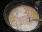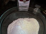 Next, the biscuit dough is mixed together. It was supposed to be “rough” or “shaggy” – looking when it came together. True enough. I was worried about over-working it. One thing I liked was the possibility of using powdered buttermilk. It’s a nice option, since it’s just a pantry ingredient. Once the dry ingredients are combined, it’s just a bit of melted butter and warm water to make a dough.