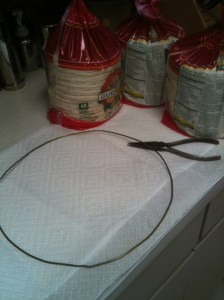- A wire coat hanger that is neither too lightweight and flimsy (easy to shape, but will loose the circular shape when the tortillas are added), nor too heavy (too difficult to take apart and shape into a circle), and preferably not white