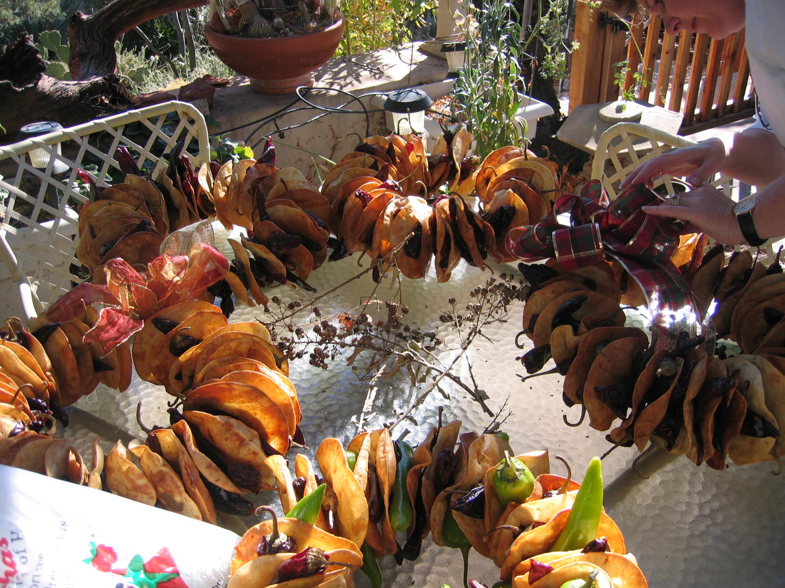- Chiles. I usually use dried New Mexico or Anaheim chiles because they are inexpensive and are a beautiful burgundy color. As you’ll see, you can use fresh as well (though they are better left outside if you have fruit flies in the neighborhood), which can make a festive combination of red and green.