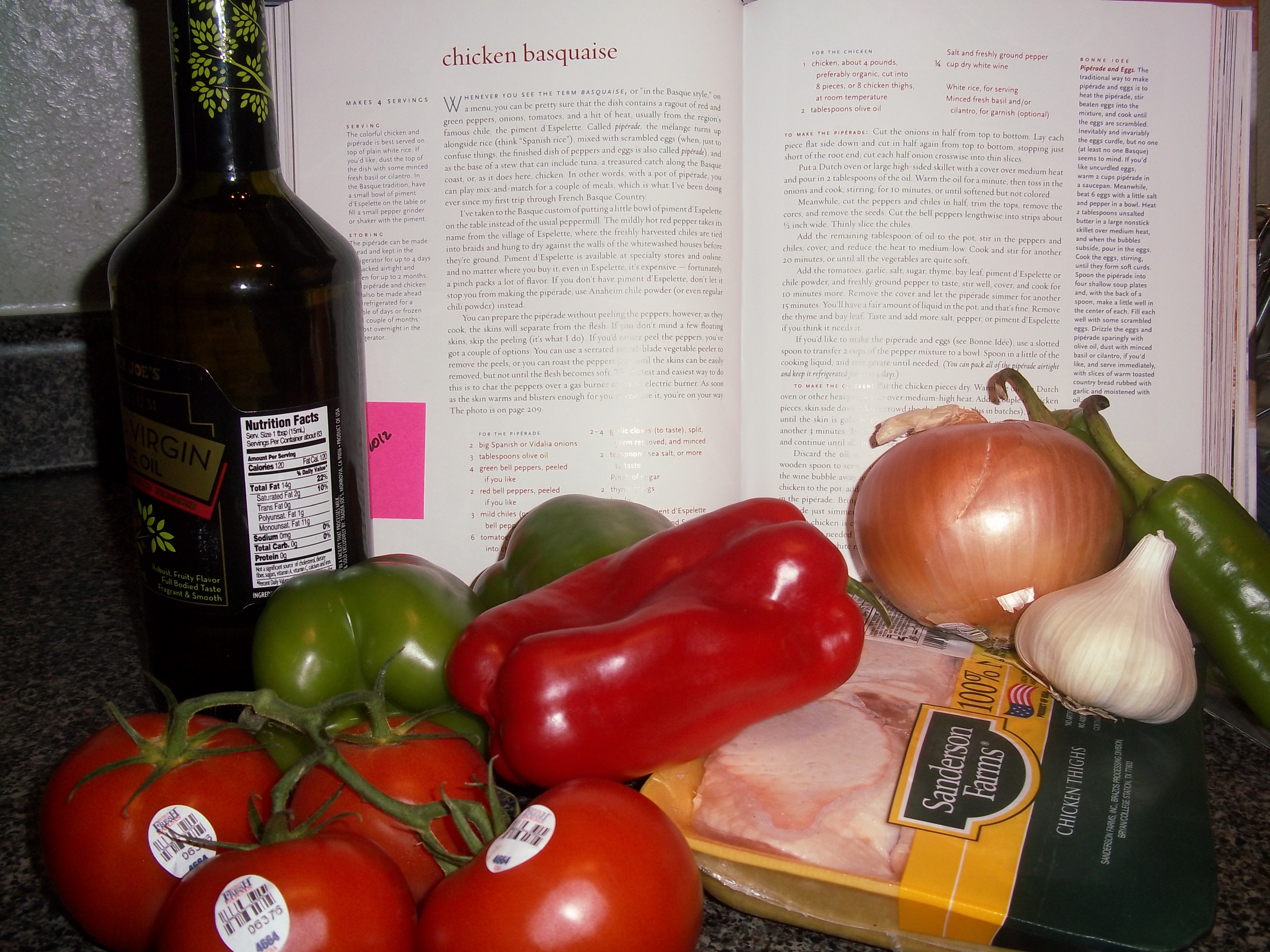 This chicken basquaise is really a piperade to which chicken is added. When I did a little added research, I found that this recipe is really quite traditional.