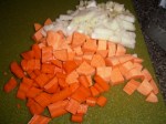 I really like vegetable soups, and so was looking forward to this recipe. As it turned out, it was a pretty simple one. I took Dorie’s suggestion and in addition to carrots, added a sweet potato as co-star in the soup.
