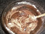 It seemed that the mixture really reduced when I folded the whites in. It wasn’t as fluffy as I’d hoped. I may have over-whipped the egg whites, but I think it was really the thickness of the chocolate mixture. Once this was complete, the mixture was spooned into individual serving dishes.