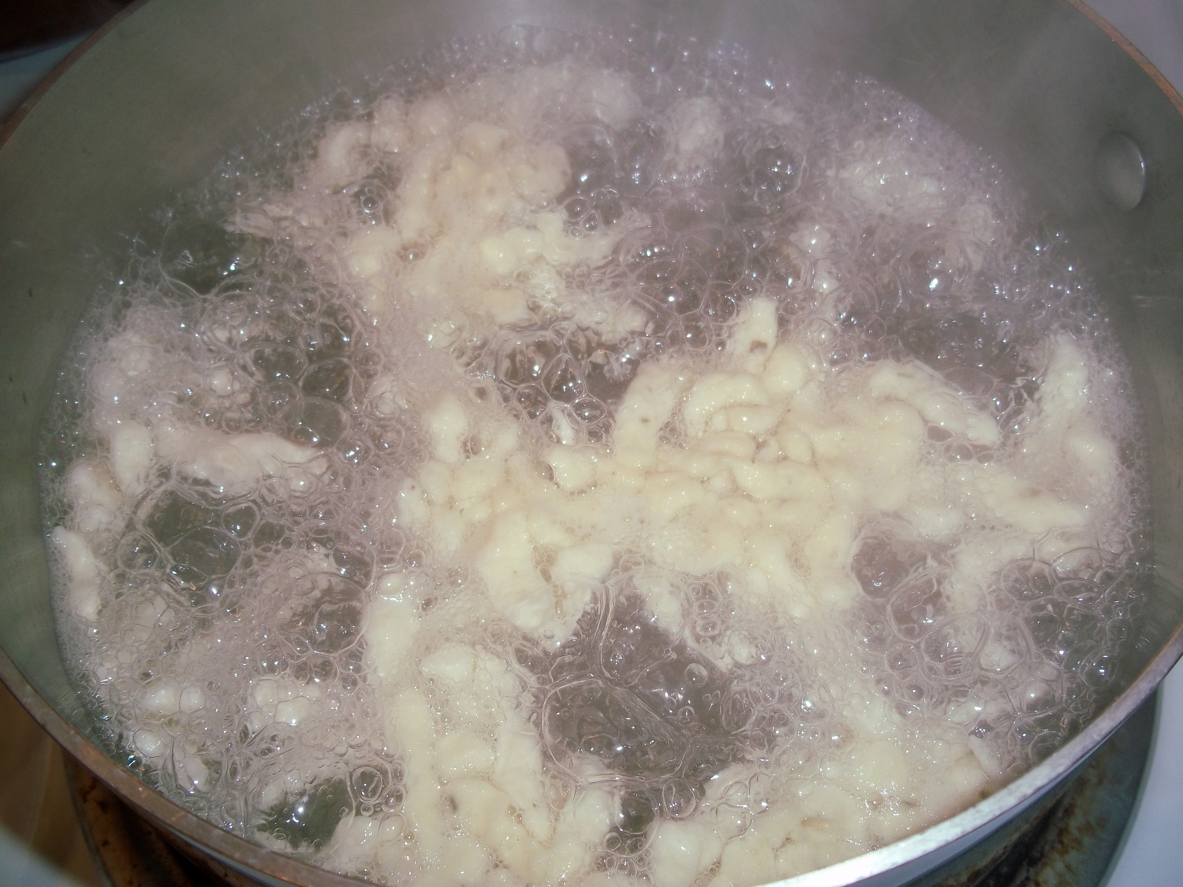 So, I really just had to get this one made, and I was glad that I did. After reading about the amounts this recipe makes, I decided that I’d only make a third of the recipe (there are 3 eggs, makes it easy). I didn’t take any pictures of the dough – it’s just a simple egg dough that’s pretty sticky and came together very quickly. There was no resting, and waiting, and  fiddling with it, which was nice. I didn’t have fresh herbs (which I’m sure would have made a difference), so just used a Parisian Herb Blend that I had on hand. I used a regular grater to make them, squishing the dough/batter through over the top of the boiling water. Once I got the hang of it, it was really simple. And it does, in fact, cook very fast.