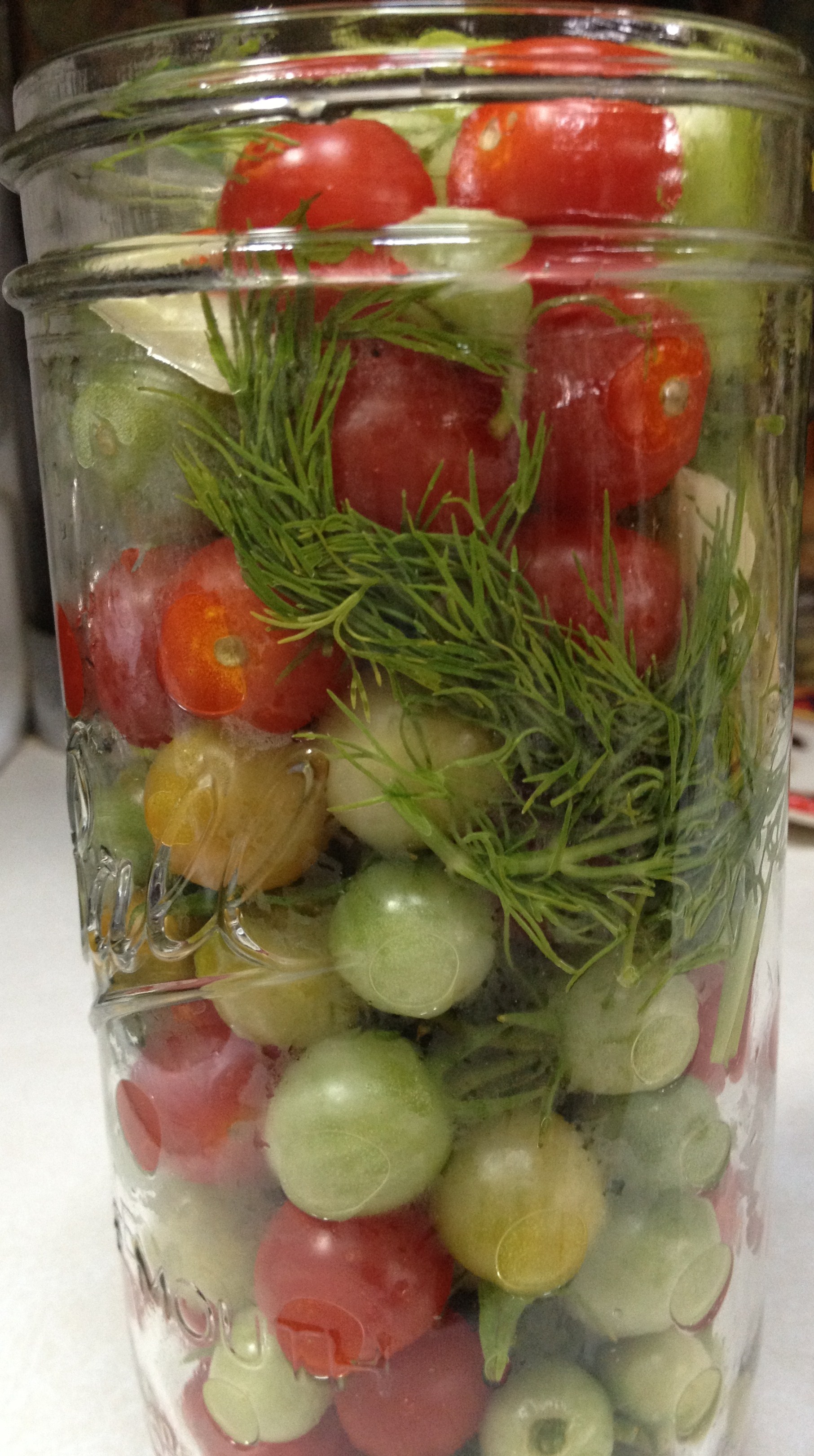 I’ve made more, once using some red jalapenos (though fewer of them along with Persian Cucumbers), and another time, I used the final green and sweet 100 tomatoes from the garden (with a less-sweet brine). I was hopeful about the ripe tomatoes, but while good, not a big deal for me.