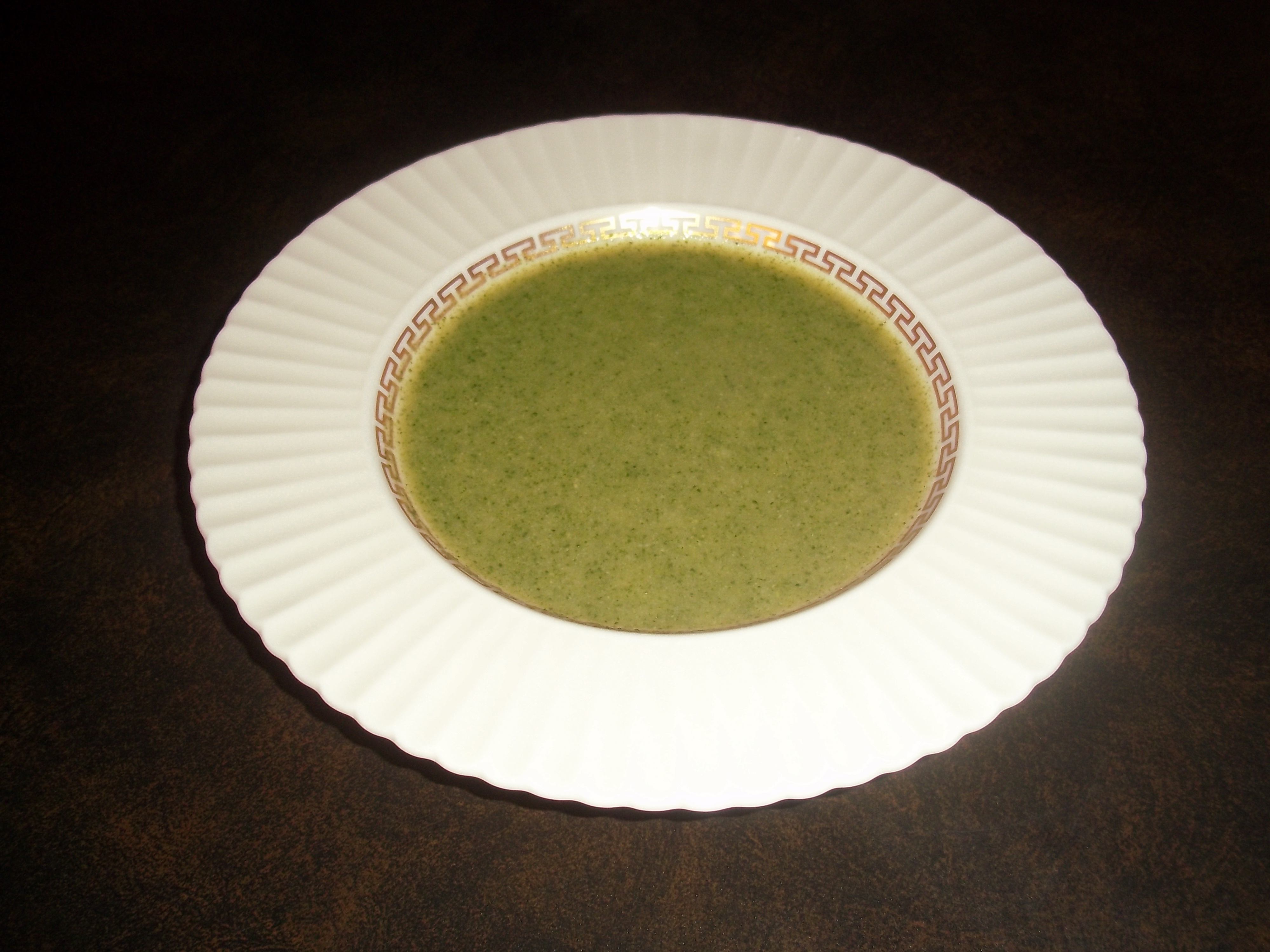 I decided I’d dress up the soup by putting it in a soup plate. Actually very pretty, and if I wanted something very light at a big dinner, this would work. I also tried the soup in one of our red cups, and it looked pretty too! (again, pretty lousy photos though)
