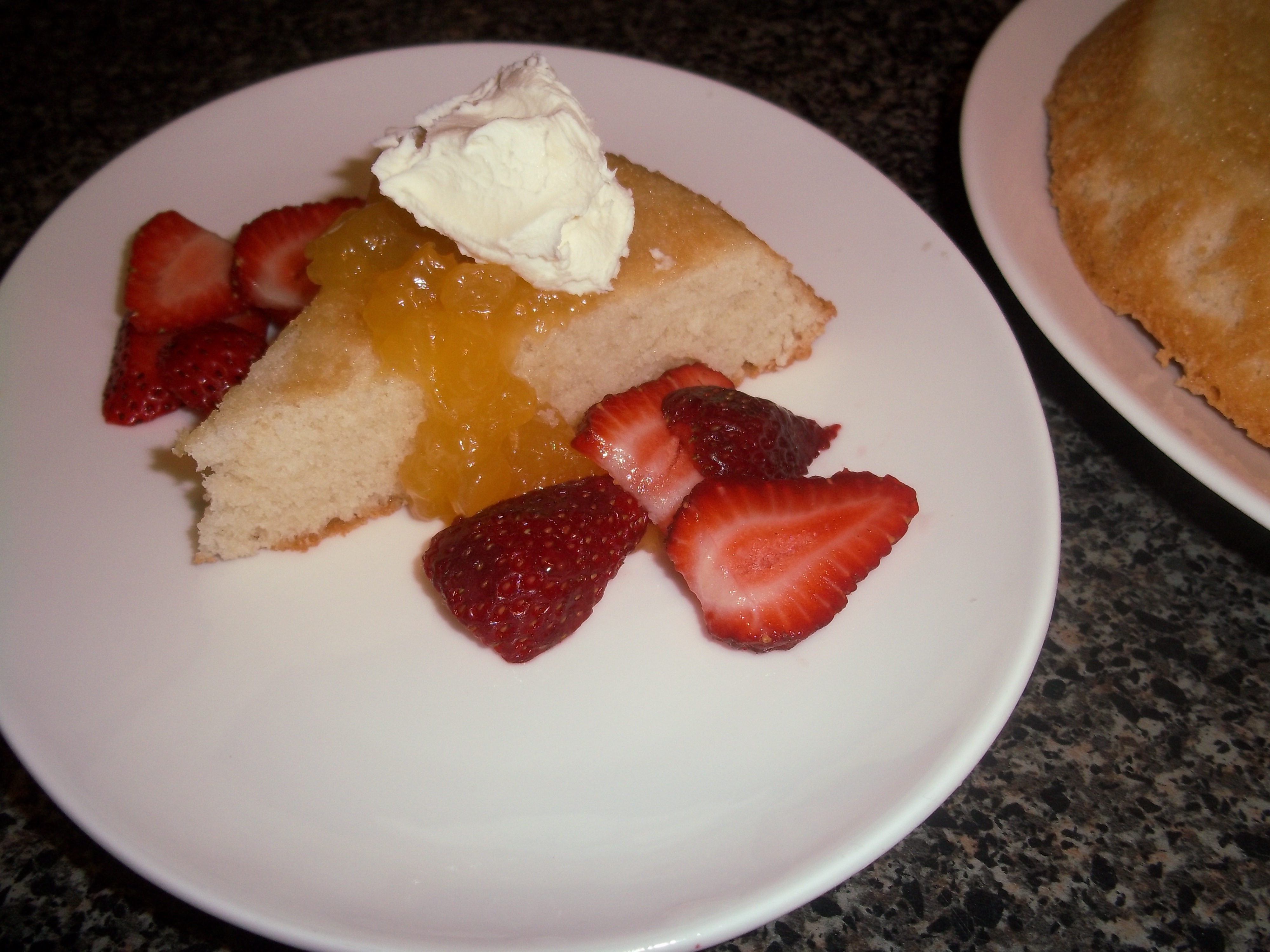This cake can be served in many ways – I happened to have some organic strawberries, marscapone and lemon curd – which turned out to be really lovely. But I also brought the rest to the office and shared – just plain. But fabulous with a cup of coffee or tea. It would be wonderful with many different toppings as well. This was really just a wonderful, simple cake. I’m enamored!!