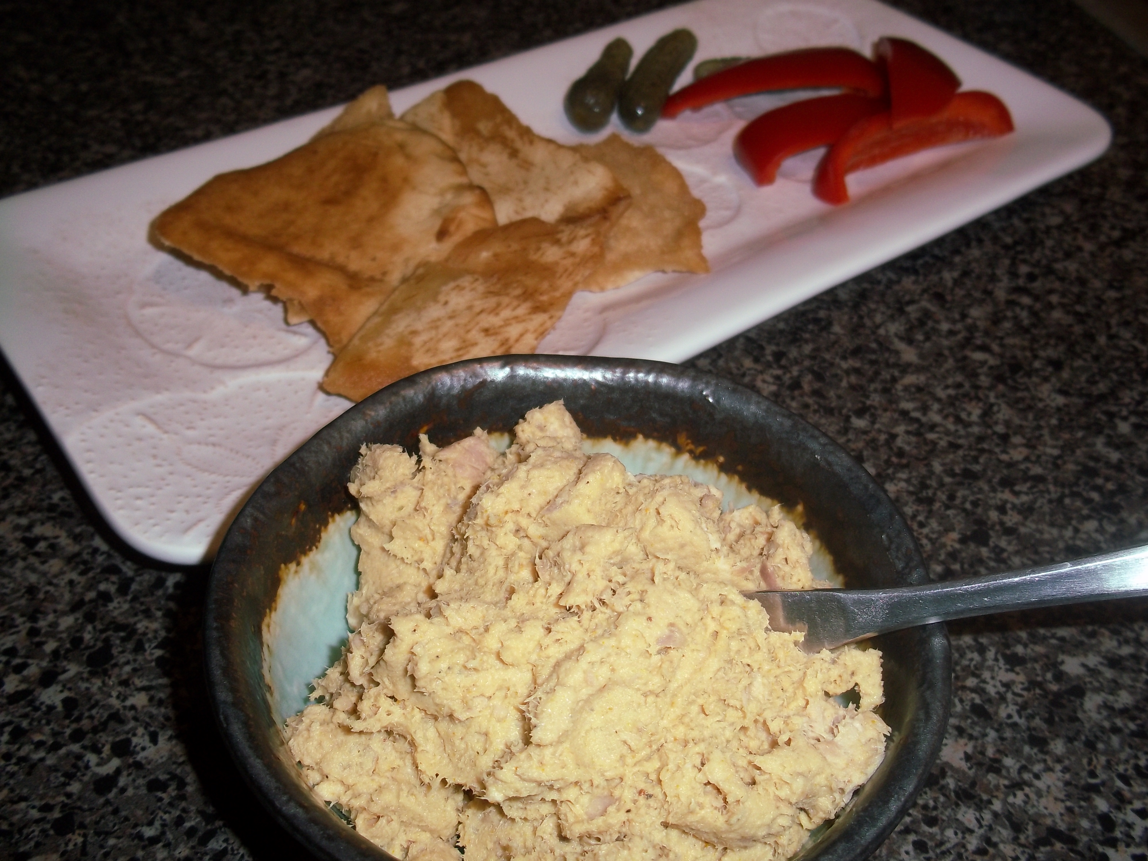 I served mine with some pita chips, cornichons and red bell pepper for a light dinner