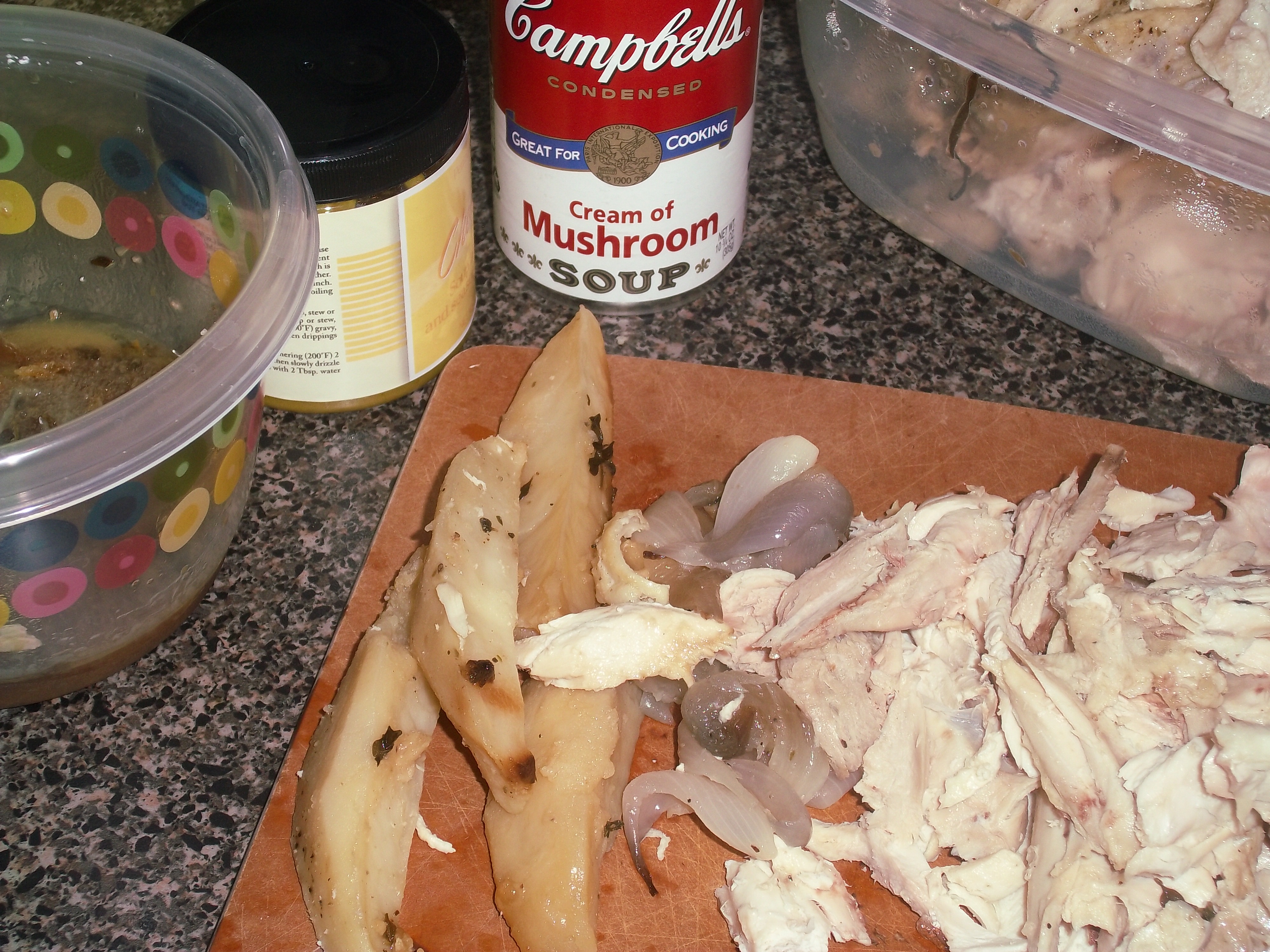 I adapted this recipe from a Southern Living Magazine. It calls for using frozen biscuits for the “topping” element. While I do make mine from scratch from time-to-time, even my friends in Atlanta agree that these are great. They are miles better than anything found in a can, and have the added benefit of allowing for baking the exact number you want to have – so that they can always be fresh. This also utilizes cream of mushroom soup, and I didn’t vary from that either, since I didn’t think this needed to get too fussy.