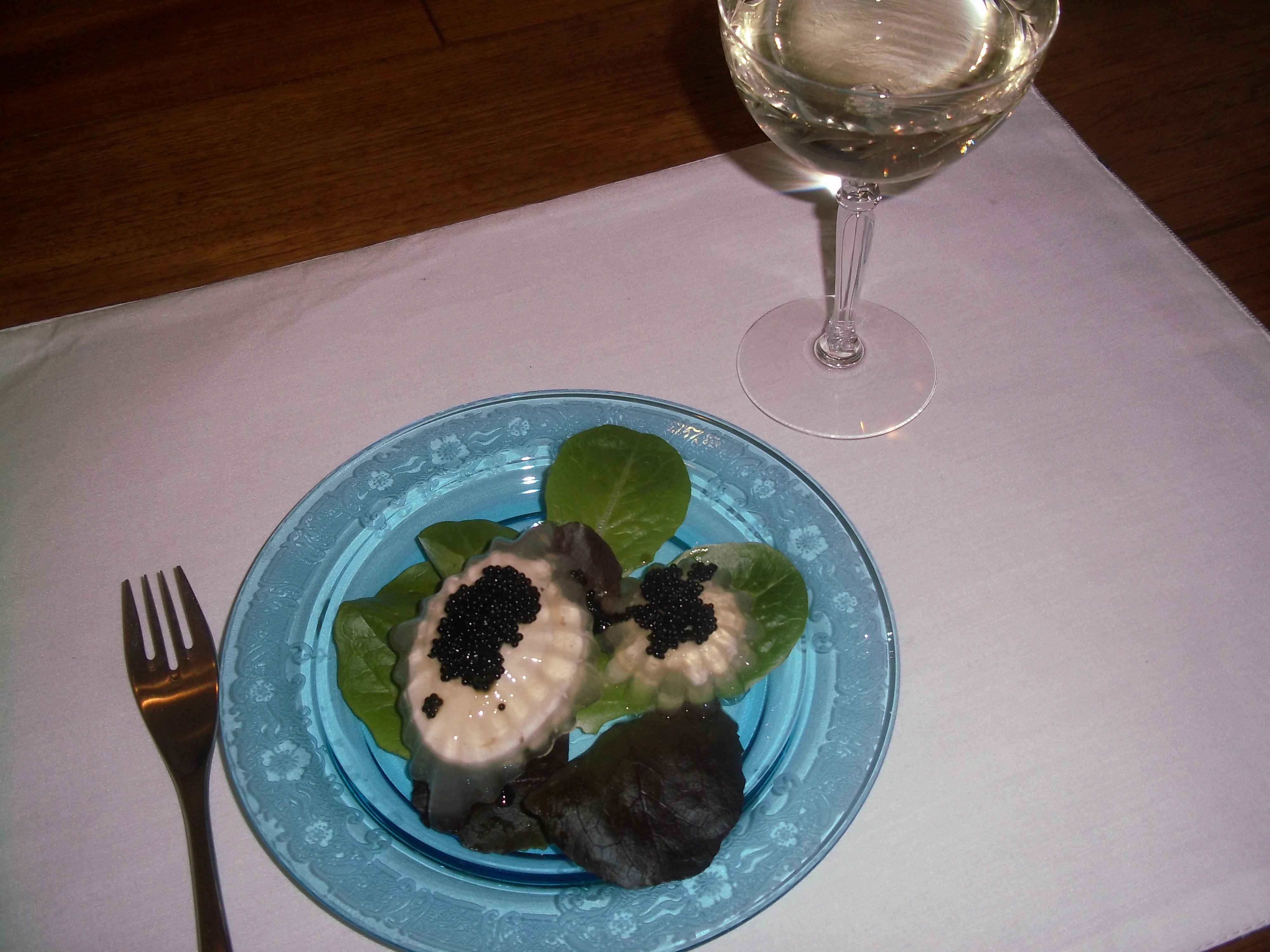 At the end, this was more fun to think about and make than it was to eat. As I’ve said, while I don’t have a problem with caviar per se, it’s not really my thing. And I wished that the aspic itself had more flavor. I should have trusted that it wasn’t highly flavored enough, because it was totally overwhelmed by the caviar.