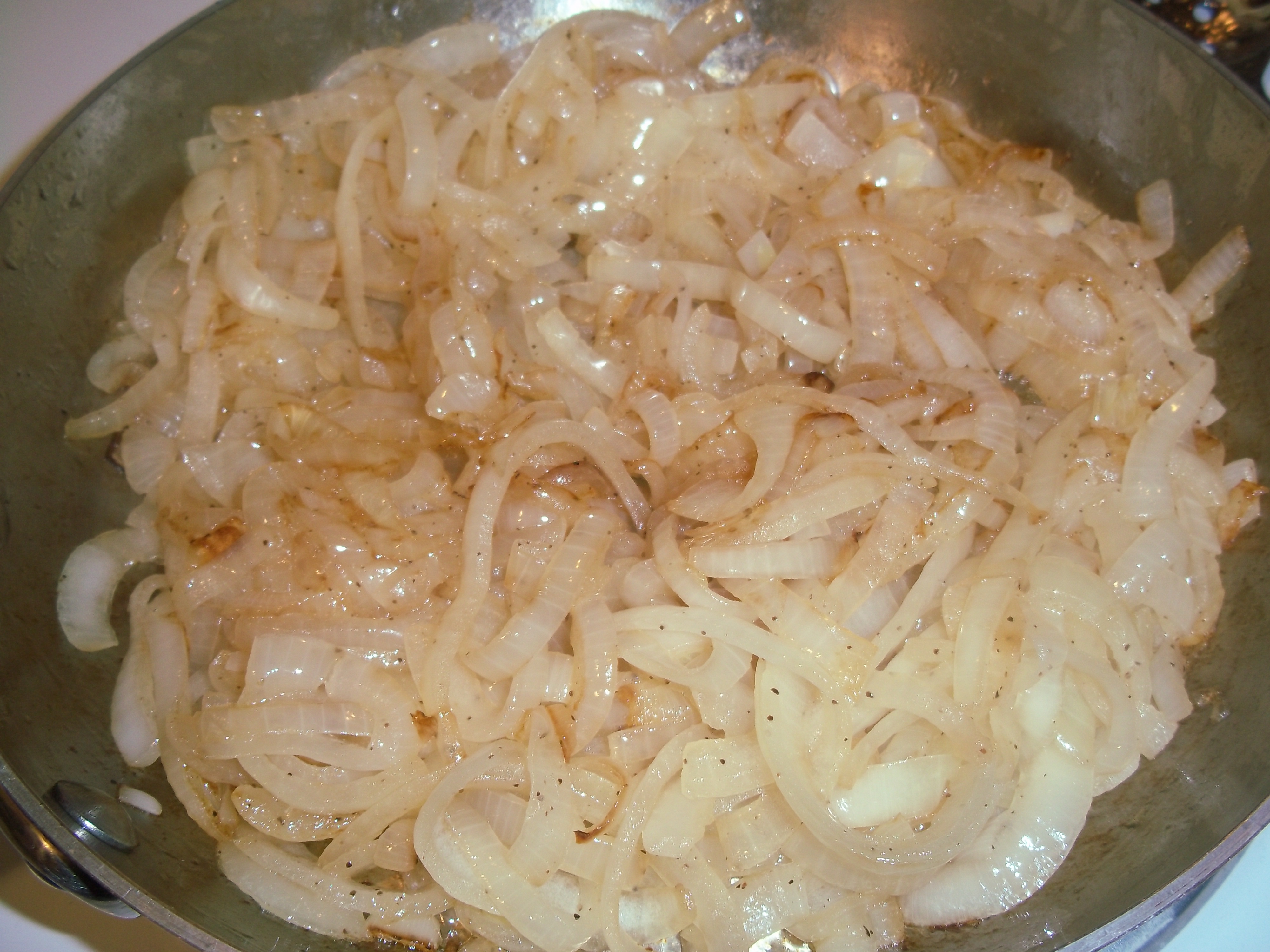 Hugh uses a lot of caramelized onions – particularly for his pizza. I think they are fabulous, but often get too busy, or don’t think of them. I decided to make a big batch, even though I was only making one pizza at the moment. They are, of course, simplicity itself. Sliced onions slowly cooked until they are nicely browned. I often don’t quite take the time to get them as browned as I would like, but they are always delicious.
