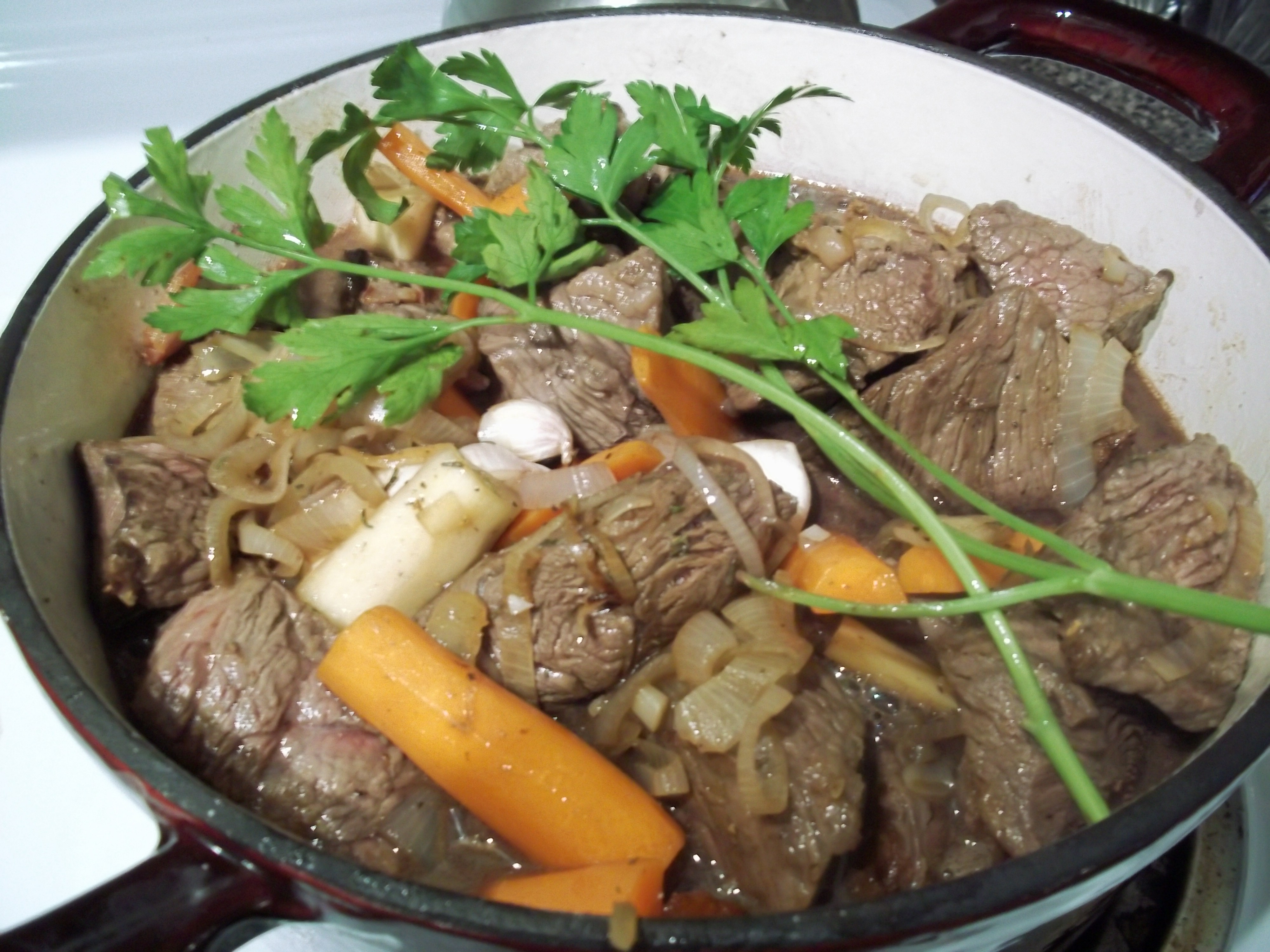 my go-to beef daube. Before ffwd, I didn’t really like anything braised. “Boiled Boot” was just something that didn’t appeal. Sure, we had an occasional pot roast growing up, but this version, with wine, cognac and vegetables, is one that is both easy, and elegant all at the same time. It certainly satisfies for when you want something warm and comforting – or, maybe you just need something that can be made ahead. I have another recipe for short ribs that maybe I like better, but this always turns out perfectly and is the opposite of fussy. (as with all of those early recipes, the pictures are horrible!) Now that I look at this picture it reminds me that I first served this for one of my Dad’s birthdays! 🙂