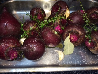 I did make the beet soup again, this time roasting the beets attached to the greens. The ratio of greens to beets was high – lots of greens left over from the tart. But we decided that we liked the soup made with baby beets as I had before better than this time. I loved the roasted garlic, but the beets just weren’t as sweet – in fact a bit bitter. So. Note to self!