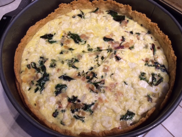 We were definitely looking forward to the tart. It has the same sturdy crusts as Hugh uses, which makes it both delicious, and a great casing for fillings, since once served, the slice can be picked up – no wimpy falling-apart crust here. I did decide to save time and try pressing it into the shell. Well, not the best idea I ever had. It looked great, even par-baked, but it leaked… Surprisingly, it still held together once cooked though – so good lesson learned! The filling is the sauteed greens along with onions, garlic and fresh herbs. Then with ricotta salata (delicious!) and an egg and cream custard. This was fantastic, and held up well as a leftover. I would maybe use more greens next time, but it turned out great – so maybe it was perfect as is!