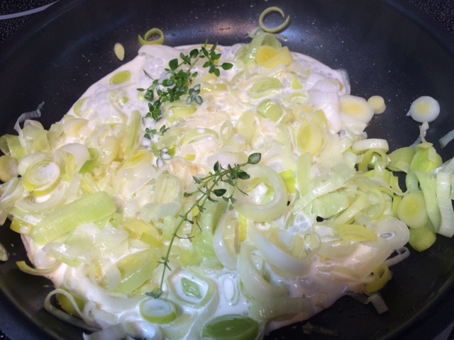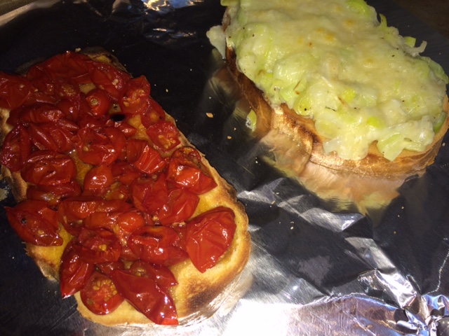 Another recipe that I wanted to try was the Leek and cheese toastie. This one was a huge hit with others, and I had every intention of making it before. But. Well. This is a super simple recipe. The leeks are cooked until tender, cream is added, then cheese. It all gets piled onto the top a substantial piece of toast, topped with a bit more cheese and broiled until browned and bubbly. Some fresh herbs are added – thyme in this case.