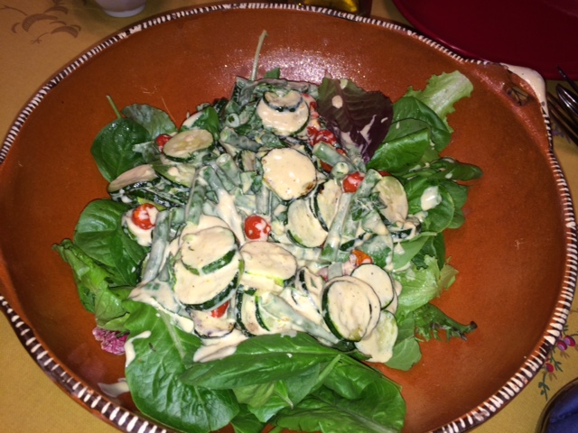 For our salad, I decided to make the Tahini-dressed zucchini and green bean salad. I thought it was interesting that the dressing was at least inspired by Yotam Ottolenghi. Because of Andrea, our Lioness, I have his latest book on order. But aside from that, this just looked and sounded good to me.