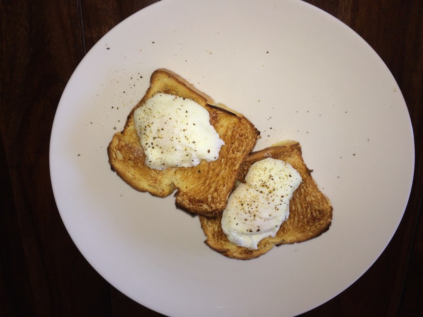There is no particular recipe. Toast. With a poached egg on top. But who knew that something so simple would taste so good. It can be dressed up with a little truffle salt. And of course, some mushrooms or spinach would be heavenly. But simple as it is. it works.