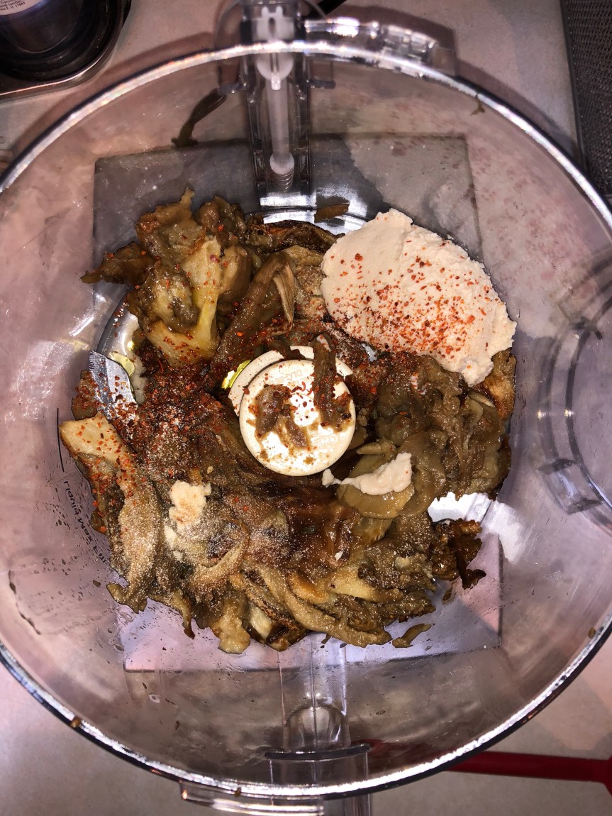 This is really a dump it in the processor thing, once the eggplant is roasted.