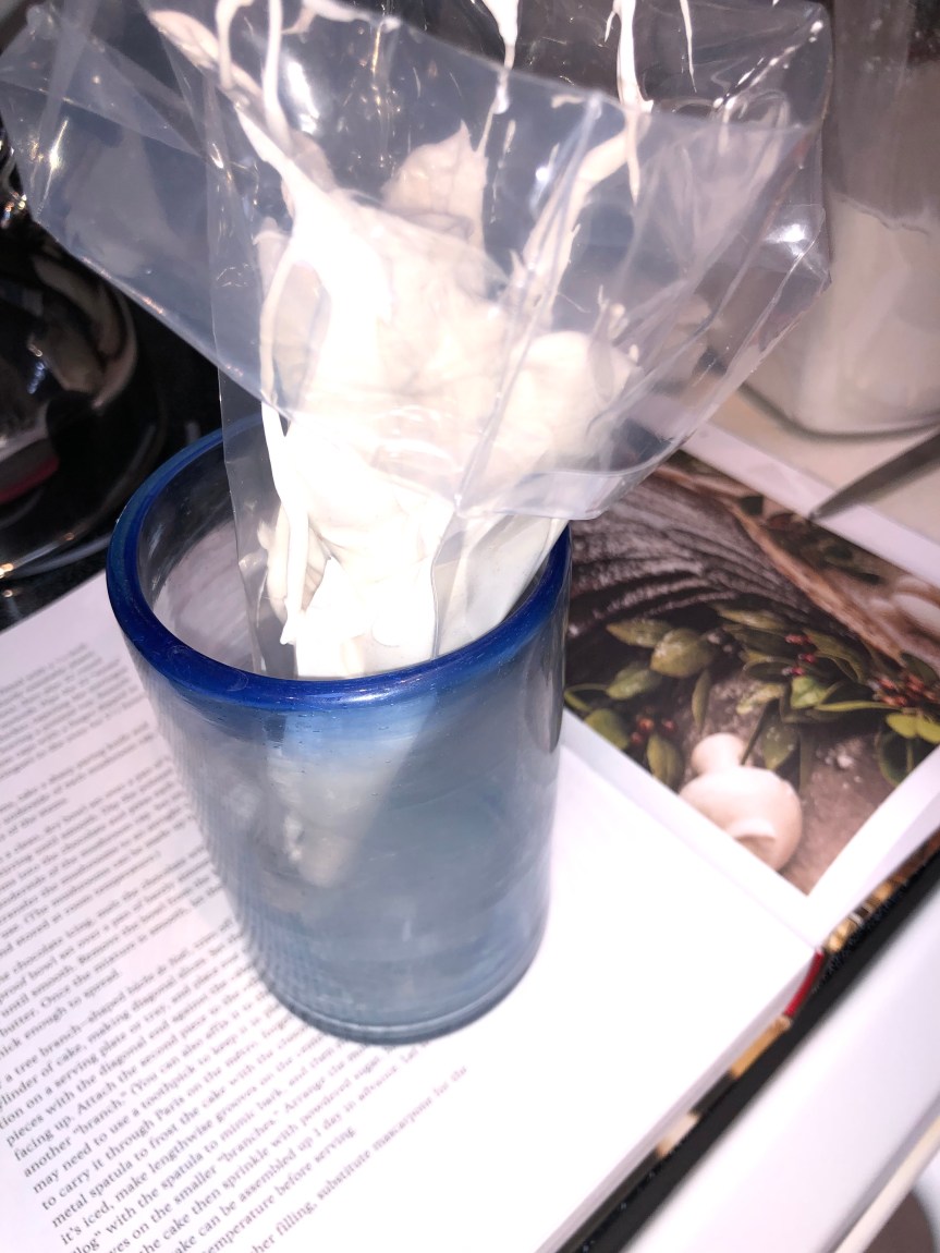 It was now time to make the meringue mushrooms. I think I could have made mine a bit stiffer, but this was a fun task. There’s a bit of cinnamon in the meringue to give a bit of color, but also made them delicious!