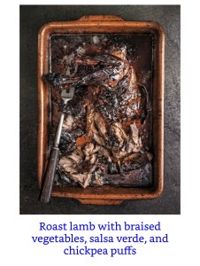 It looks great, Candy! what a bummer about the lamb being so tough. I ended up using lamb leg, because it’s what I’d bought (on sale and then froze it until I needed it). I usually roast lamb leg for Easter so I just modified the cooking instructions to fit that. I was looking at that photo from his book, though, and thinking how tasty that browned fork-shredded lamb shoulder looked. As for the sauce verte, I encourage you to revisit it with the braised veggies! That sauce really made the dish for us. It was quite good without it, but DANG TASTY with it. I wish I had a suggestion for the other half of that roast–I hate when I don’t want to eat something anymore but feel like I need to repurpose it since it was time-consuming and relatively costly.